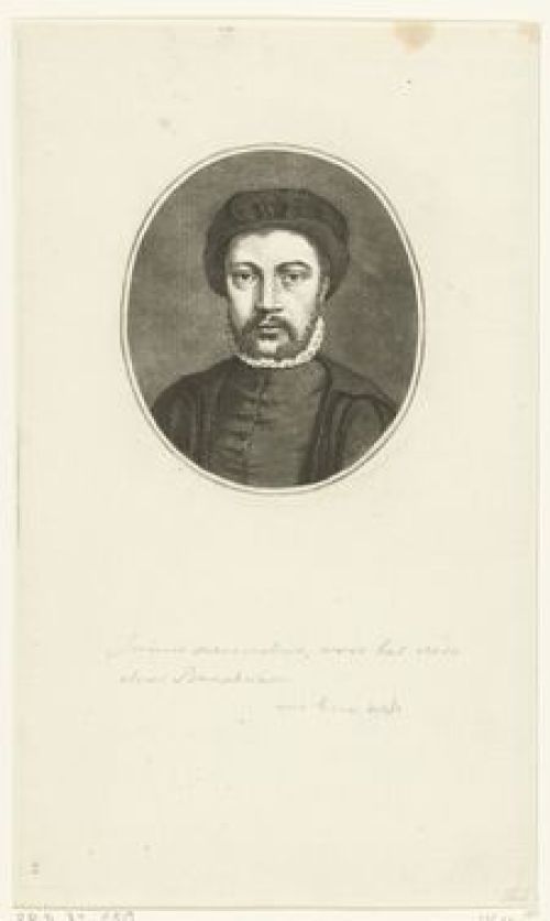 De ets is gemaakt naar een schilderij van Jan van Scorel (1495-1562). Van Scorel was als houtsnijder, tekenaar en schilder ondermeer werkzaam in Duitsland, Italië, Palestina, Haarlem en Utrecht (Waller). Hij was bevriend met Janus Secundus (Würzbach). Janus Secundus (1511-1536) was een Latijns dichter, redenaar, rechtsgeleerde, schilder en beeldhouwer afkomstig uit Den Haag (Eijnden en Van der Willigen, deel I, p. 12-17)..