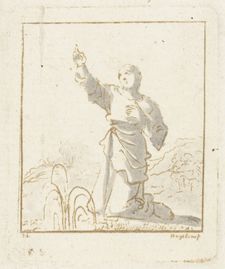 Naar een tekening van Jan Luyken (1649-1712) met de titel Jezus en de ziel beschouwen de sterrenhemel. Zie de website van Geheugen van Nederland. Tik in het zoekveld TA13571 en u vindt deze tekening. Bagelaar heeft alleen het linker gedeelte van de tekening overgenomen. De ets van Jan Luyken naar eigen tekening is te vinden in Jezus en de ziel, 1714 (p. 81).
