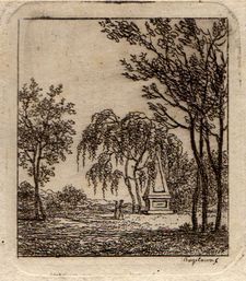 De ets staat afgedrukt op pagina 3 van een werkje van N.J. Baake getiteld: Ter nagedachtenis van Jonkheer Jan Slicher, Lid van de Vergadering der Staten Generaal, en President van het Provisioneel Bestuur van 's Gravenhage, overleden den 24 van Herfstmaand 1815.