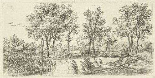 E060 Visser aan een met riet omzoomde rivier