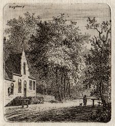 Bij een ets staat met potlood geschreven: De herberg van den boer Klugt buiten het Haagsche Bosch.