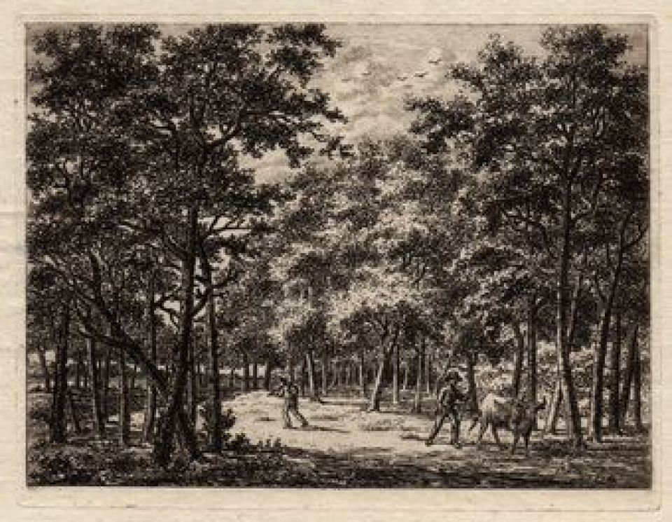 Le colporteur s'éloignant du paysan qui conduit sa vache
