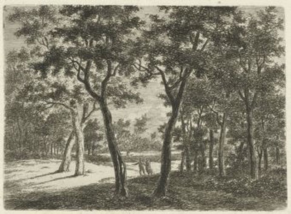 E131 Twee personen die tussen de bomen lopen
