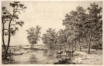 Er bestaat een schilderij van Bagelaar (zieS002) dat veel gelijkenis vertoont met deze ets. Dit schilderij was vroeger in 't bezit van Karel Vermeeren.