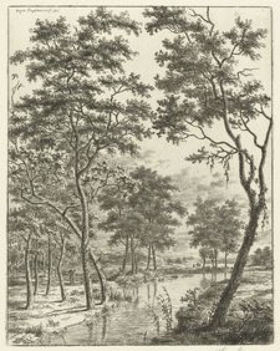 E152 Een rivier met vier rietpluimen op de voorgrond