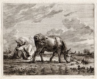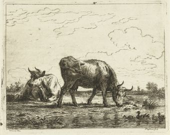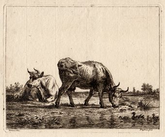 Titel (H&L):Les deux vaches auprès des canards