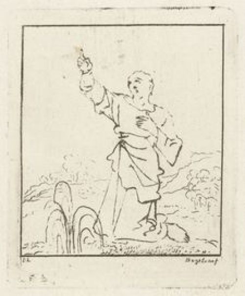 Naar een tekening van Jan Luyken (1649-1712) met de titel Jezus en de ziel beschouwen de sterrenhemel. Zie de website van Geheugen van Nederland. Tik in het zoekveld TA13571 en u vindt deze tekening. Bagelaar heeft alleen het linker gedeelte van de tekening overgenomen. De ets van Jan Luyken naar eigen tekening is te vinden in Jezus en de ziel, 1714 (p. 81).