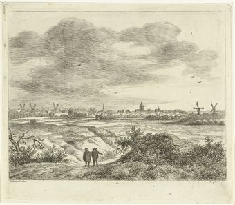 E119 Gezicht op een stad met vijf molens