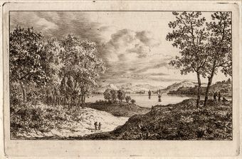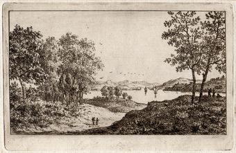 E124 De drie personen rechts onder twee bomen