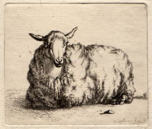 Volgens H&L is deze ets naar Karel Dujardin (1622-1678); volgens Bagelaar zelf is de ets naar Paulus Potter (1625-1654).