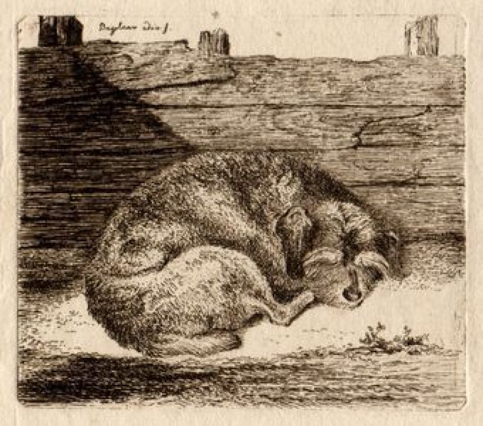 Op meerdere etsen staat vermeld dat dit het hondje van Bagelaar is.