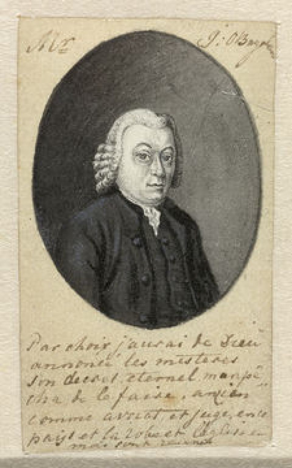 Boven afbeelding: Mr. J.O. Bagelaar; onder afbeelding: Par choix j'aurai le Dieux annoncé les mistères son decret eternel ??? de la faire, ancien comme avocat et juge en ce pays et la robe et l'église en mois sont reunit