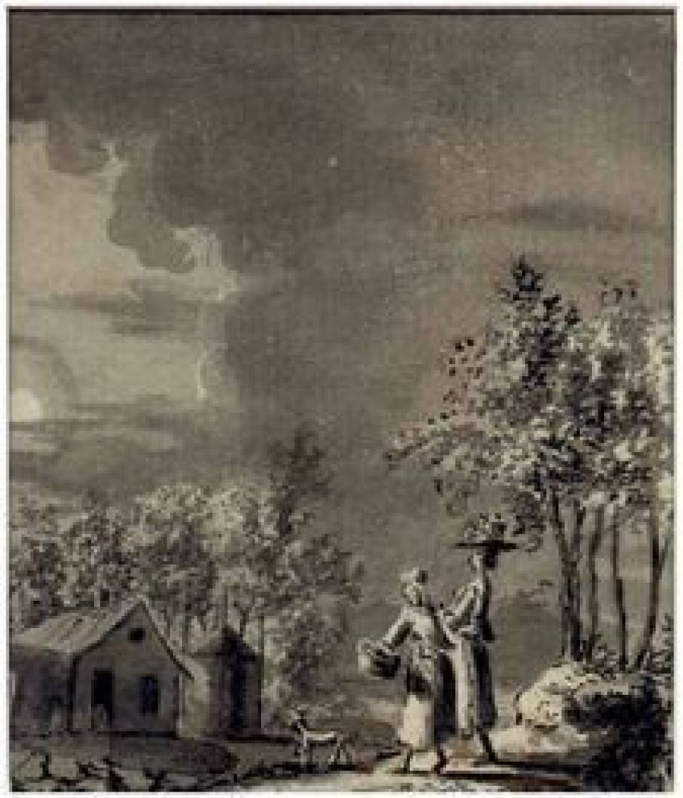 T063 Twee vrouwen en hondje bij maneschijn