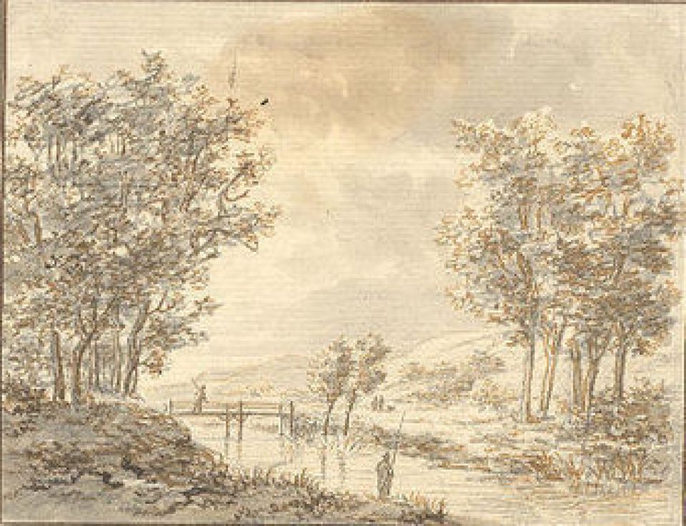 T074 Twee hengelaars en twee wandelaars bij rivier